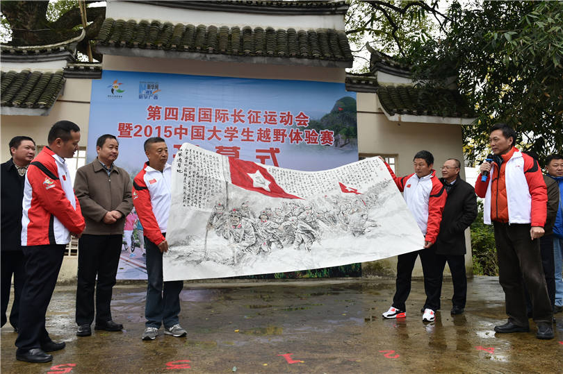 11月25日上午,第四届国际长征运动会暨2015中国大学生户外越野挑战赛在桂林兴安县开幕,本届运动会旨在弘扬长征精神,培养新时代青年坚忍不拔、团结互助的优良品质和作风。